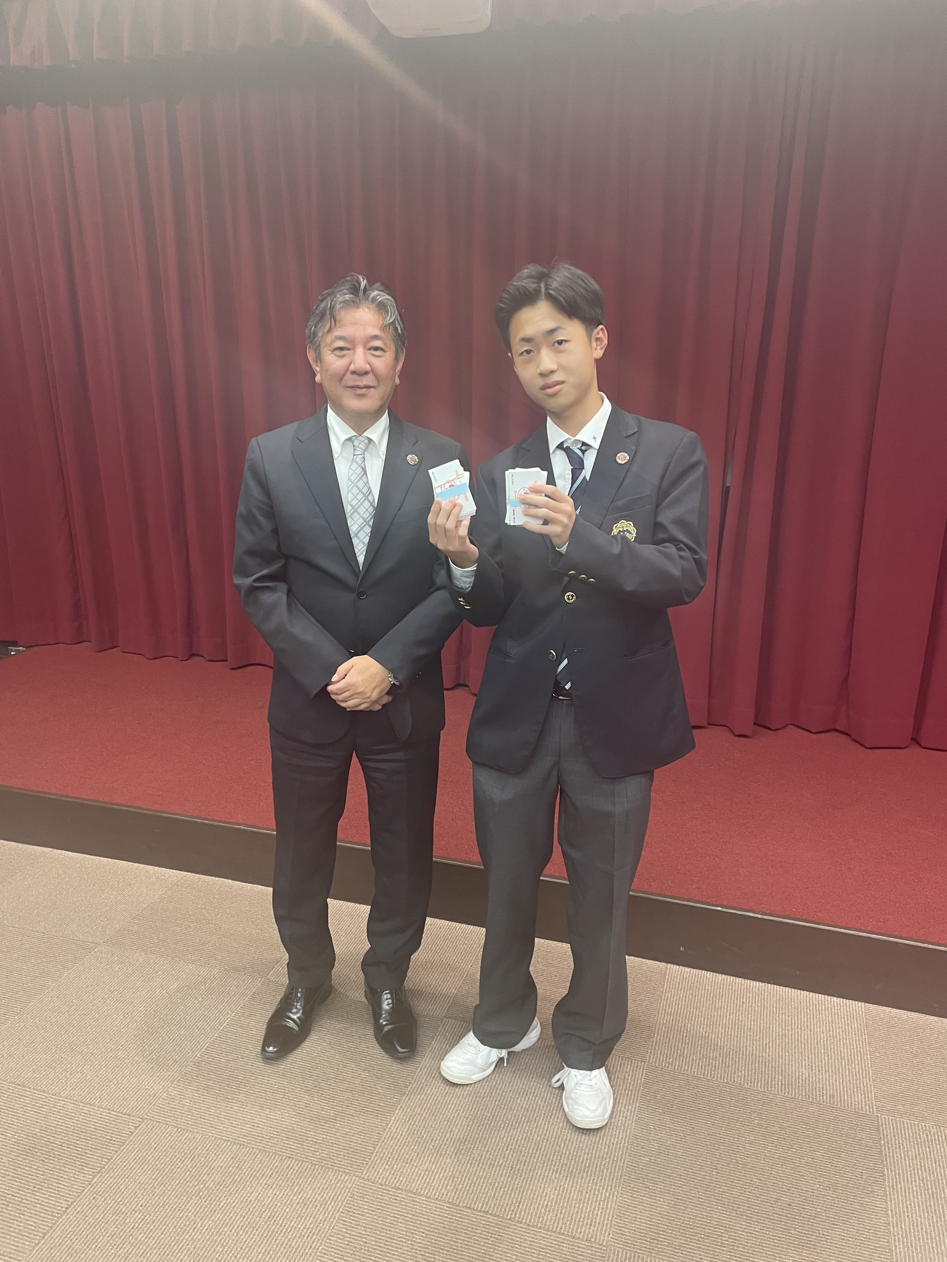 学院長から奉仕料としてパン券を頂き、学校長より授与して頂きました。
